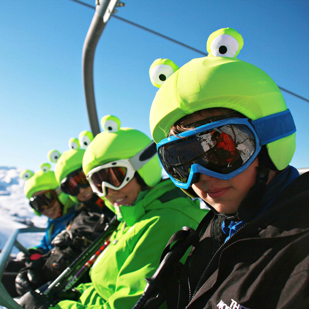 Helm Covers Past over elke ski helm, fiets helm of zelfs moto helm. Prince charming with this frog cover. Bright green so all the princesses see you! Chat on WhatsApp